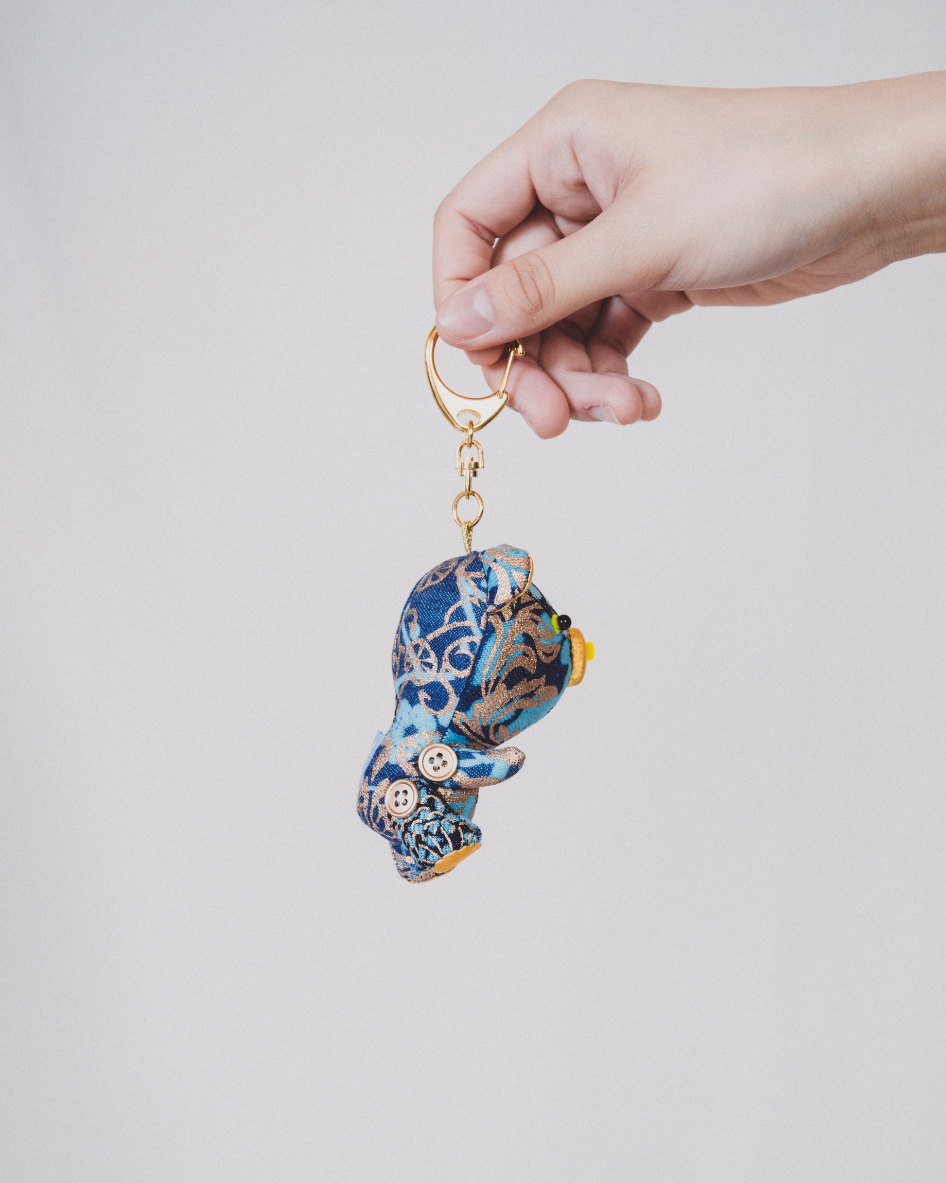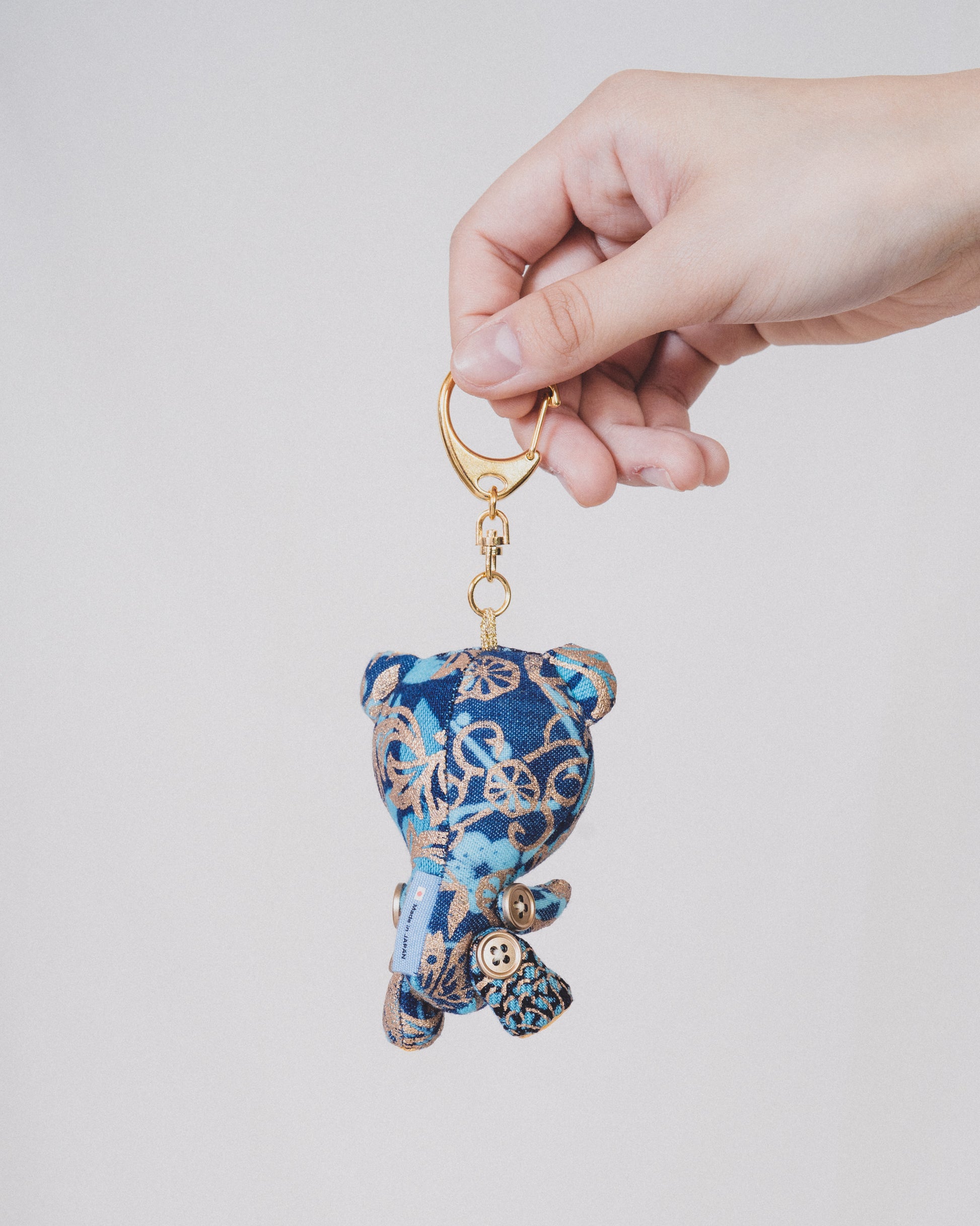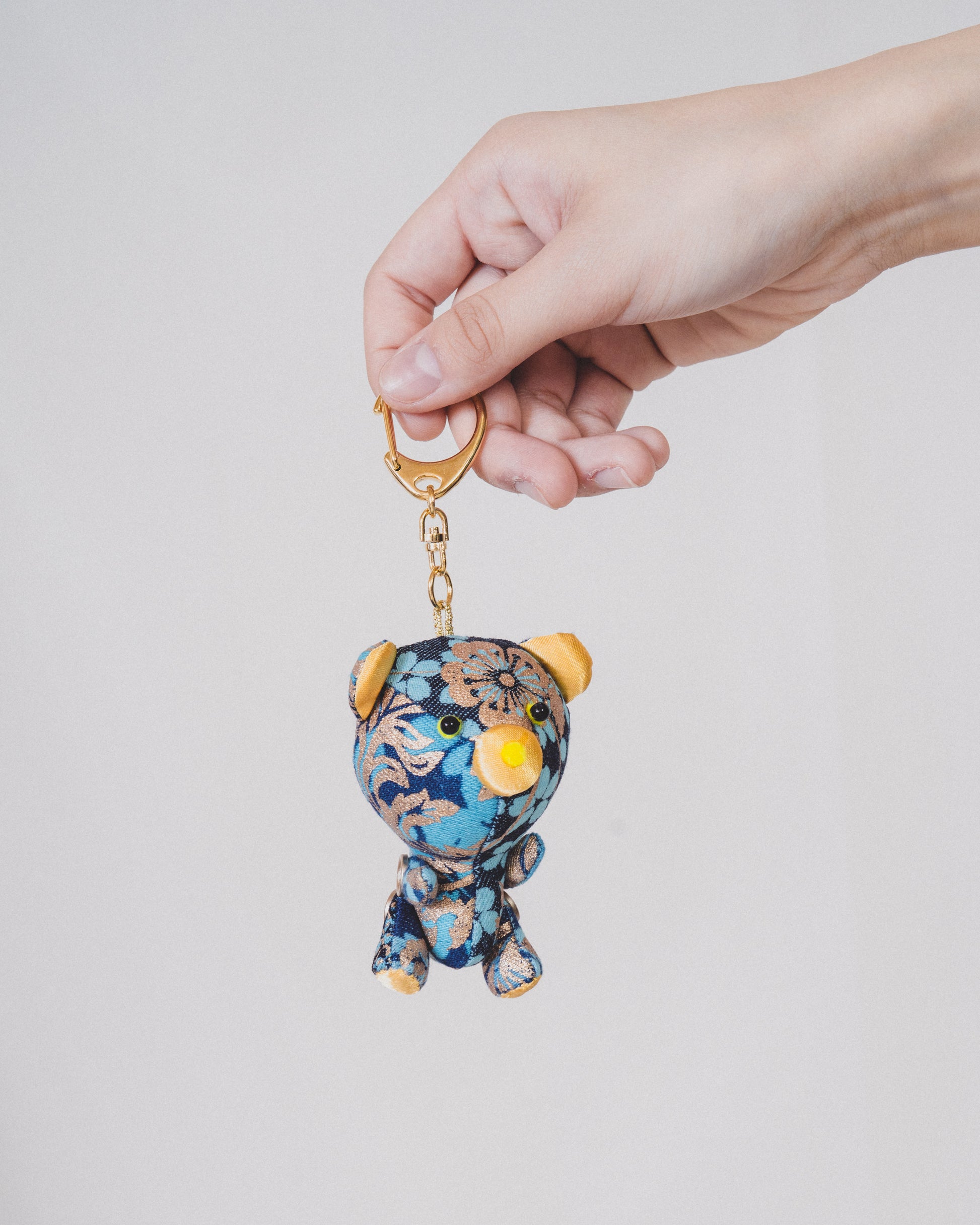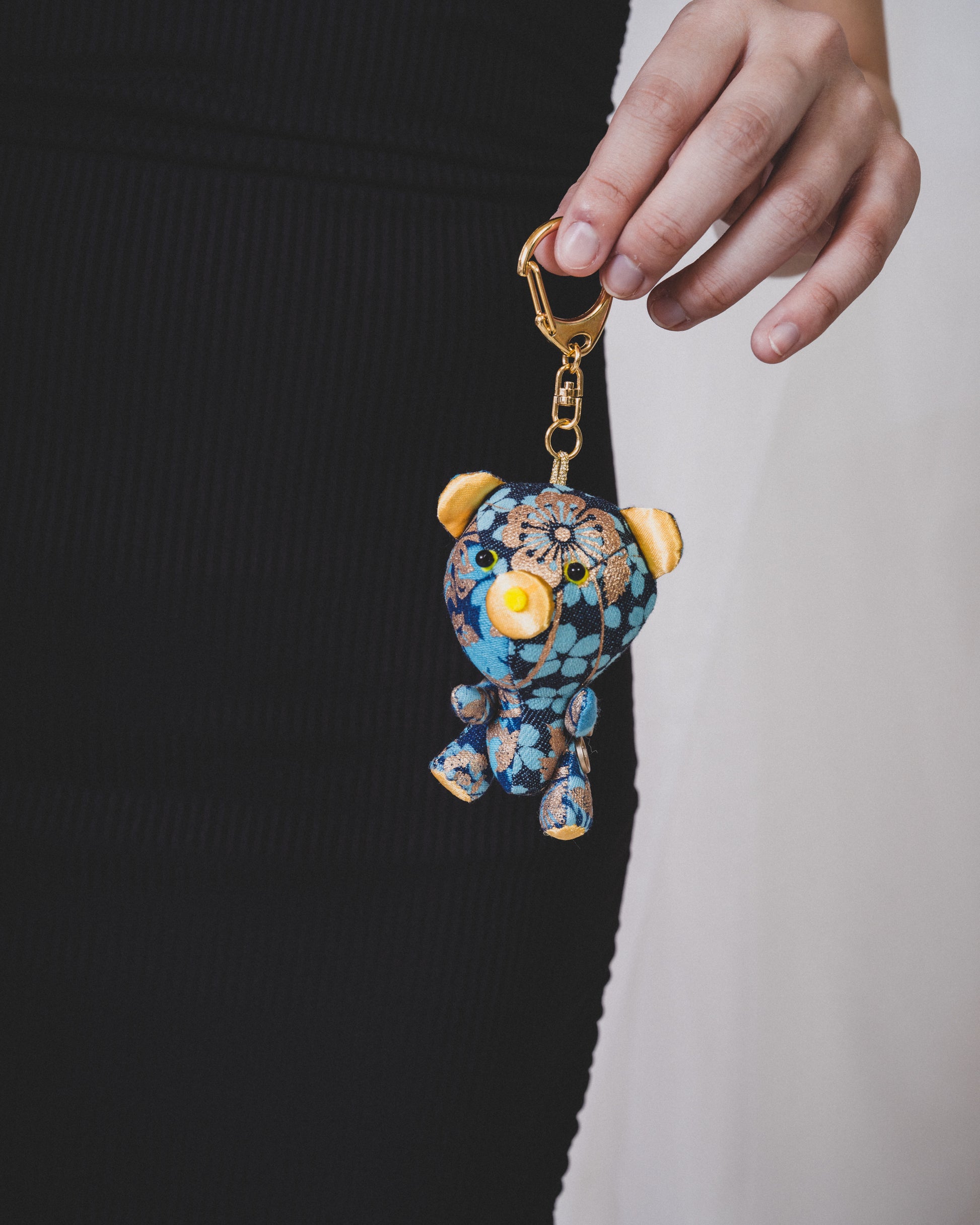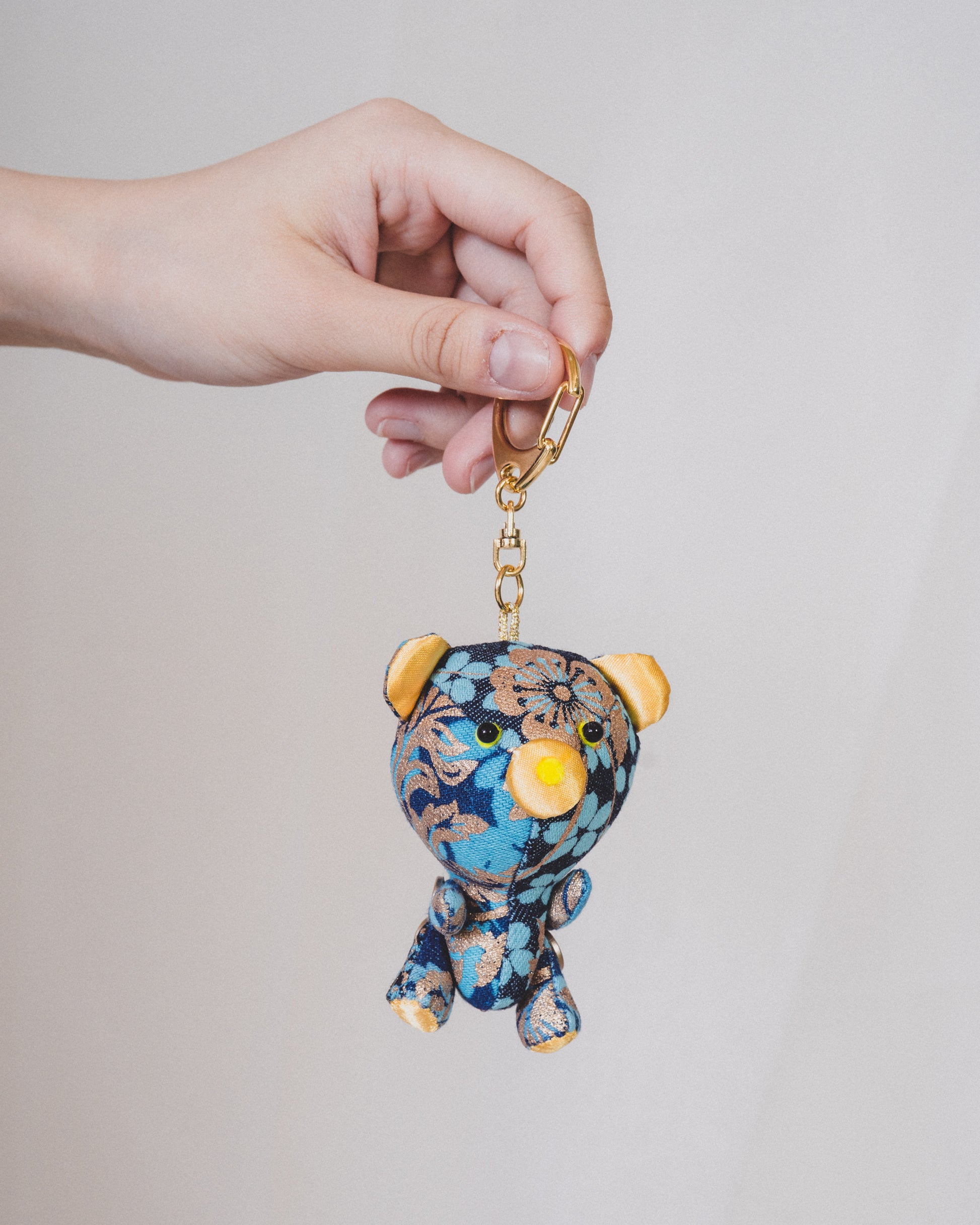 着物に使用される伝統工芸の技術で加工したデニム生地で(浸染で染めたり、柄を重ねて染めたり、金彩で柄を入れたり)様々な染色技法を使って制作したデニムのぬいぐるみです