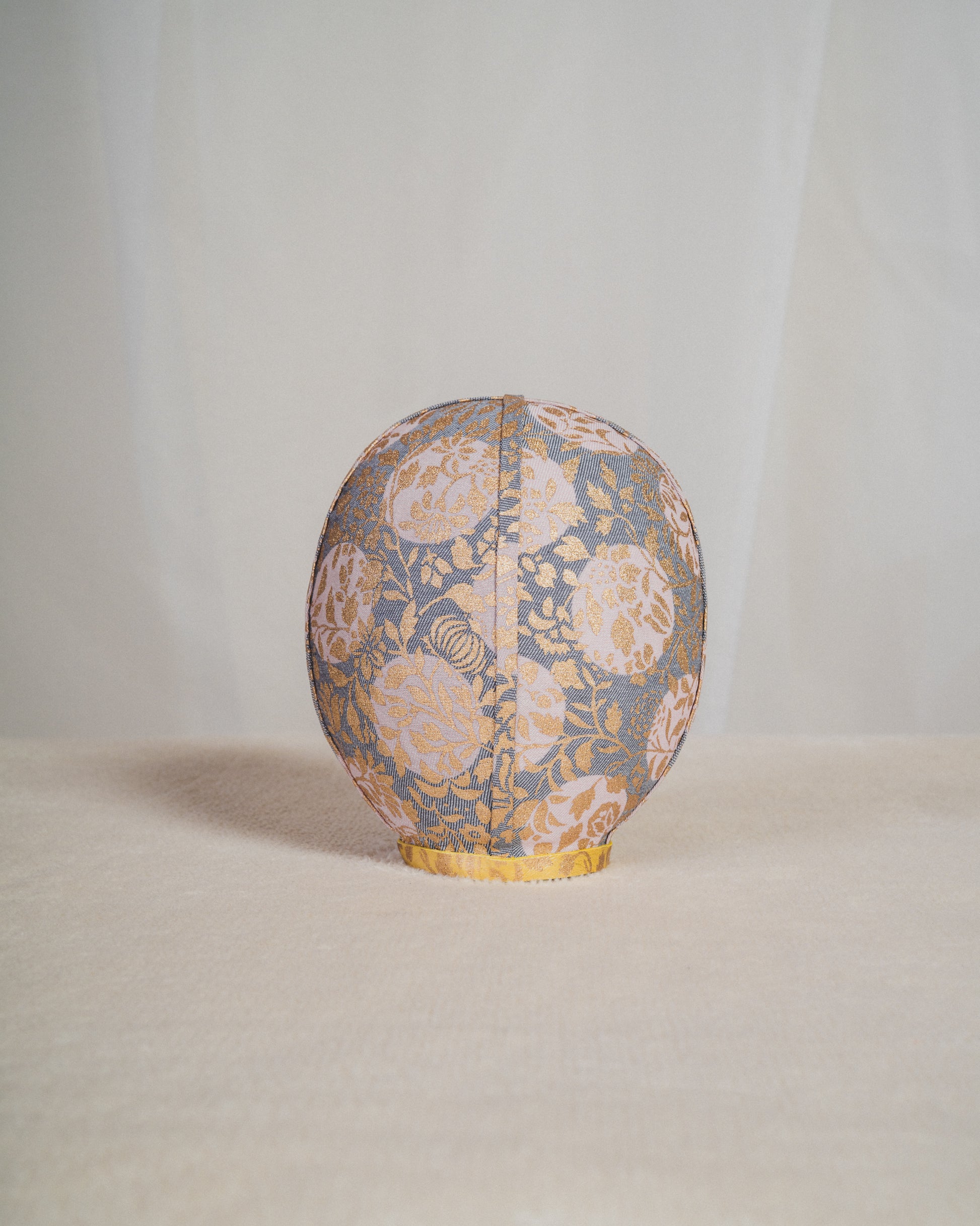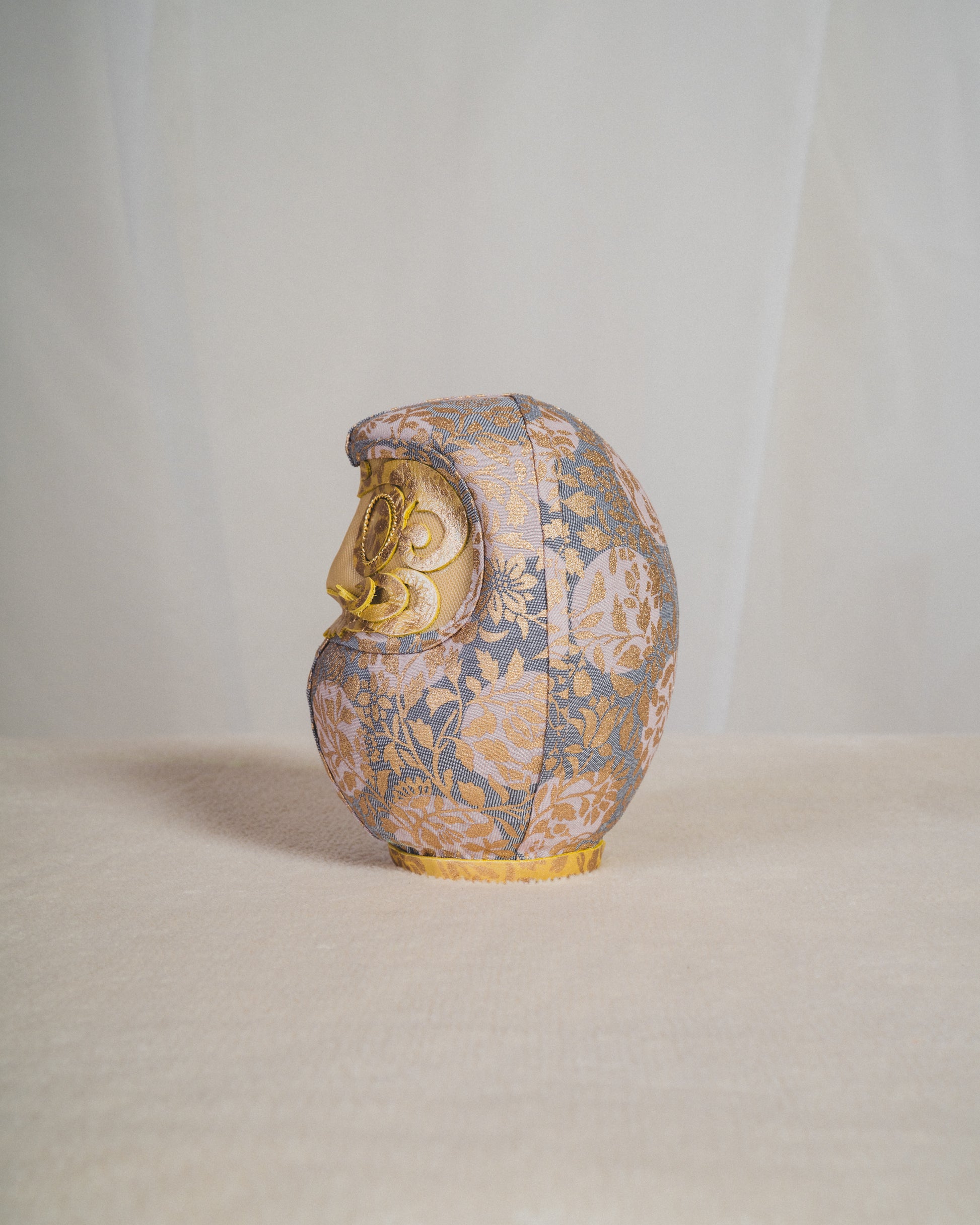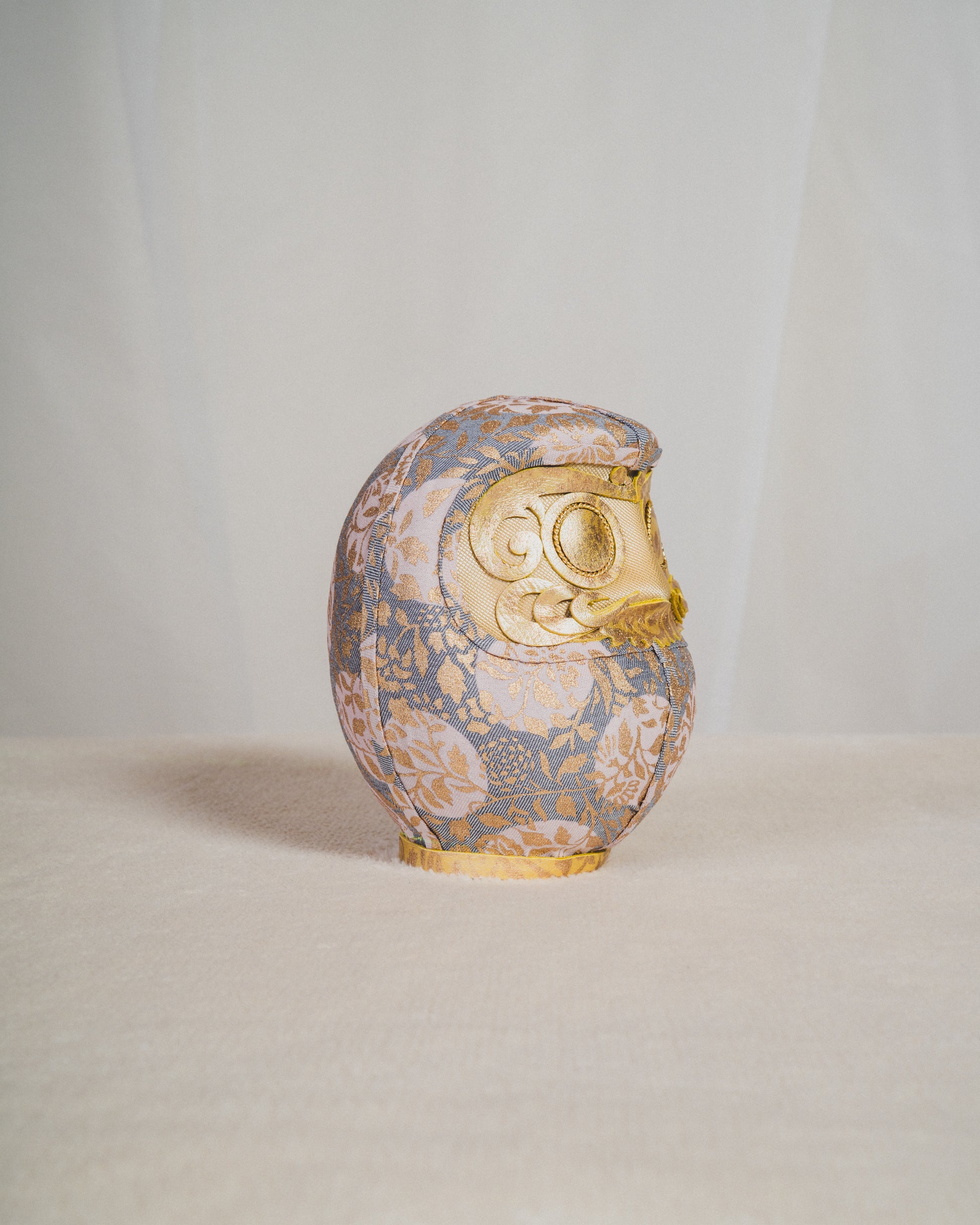 KYOTO DENIMは、着物に用いられてきた 300年以上の歴史を持つ京都の染色技術 を、デニムという現代素材に重ねることで、新たな表現を探求してきました。本作では、だるまのフォルムに金彩友禅(Kinsai Yuzen) の染色・金彩技法を施したデニム生地を使用していま。、京都の染めと金彩の文化を、現代のライフスタイルへと橋渡ししています。