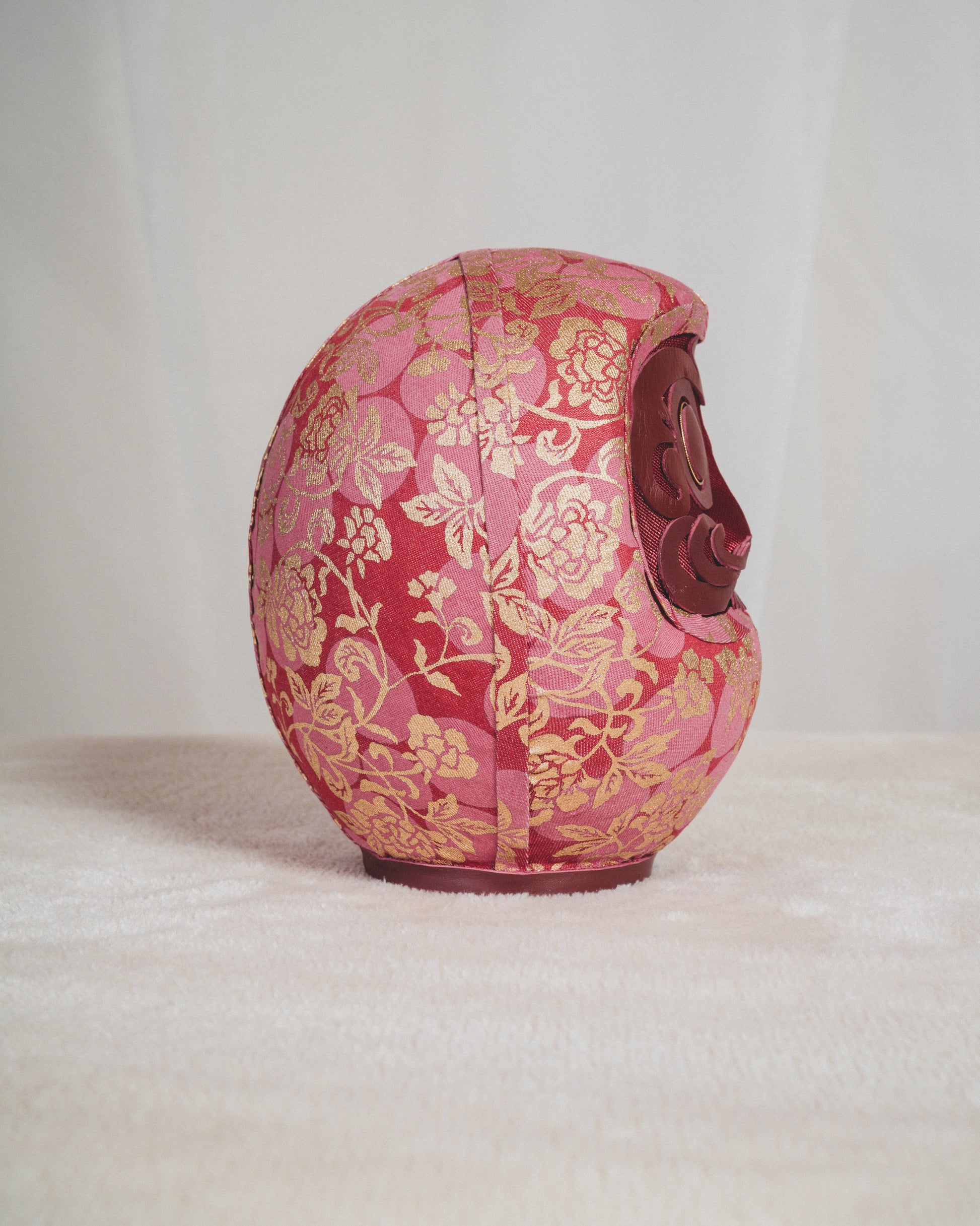 The body features a hollow structure created by layering paper, much like traditional Japanese Hariko (papier-mâché) Darumas. You may find it surprisingly light when held. This lightness is intentional—a choice made so that the object, embodying the spirit of "falling seven times and getting up eight," can lightly and effortlessly accompany you in your daily life.