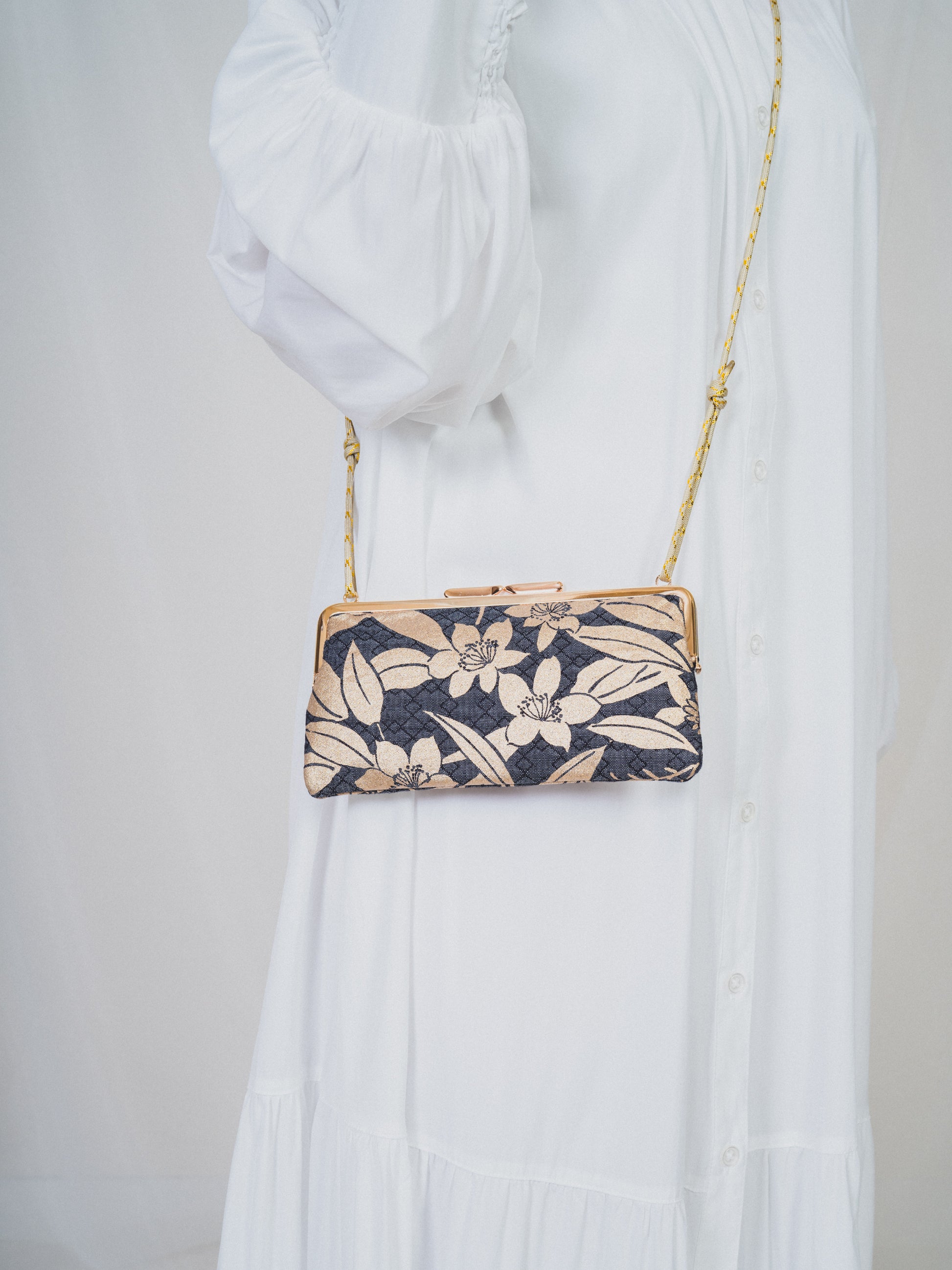 着物に使用される伝統工芸の技術で加工したデニム生地を使った最高級のがま口です(浸染で染めたり、柄を重ねて染めたり、金彩で柄を入れたり)