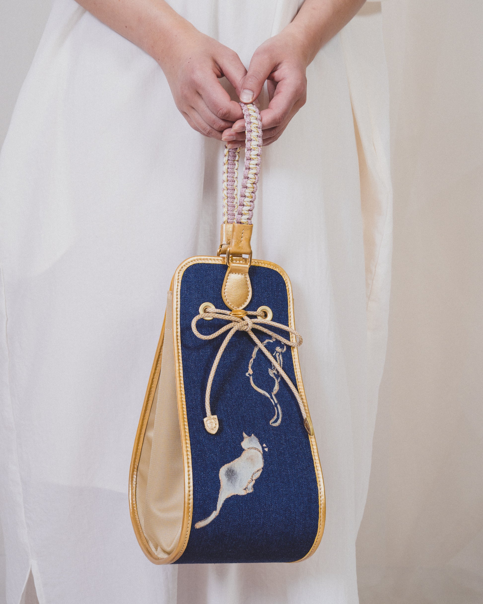 日本の老舗工房で培われた京友禅の伝統的な染め技法を、オリジナルのデニム生地に惜しみなく注ぎ込んだのが、この「しずくバッグ」です。