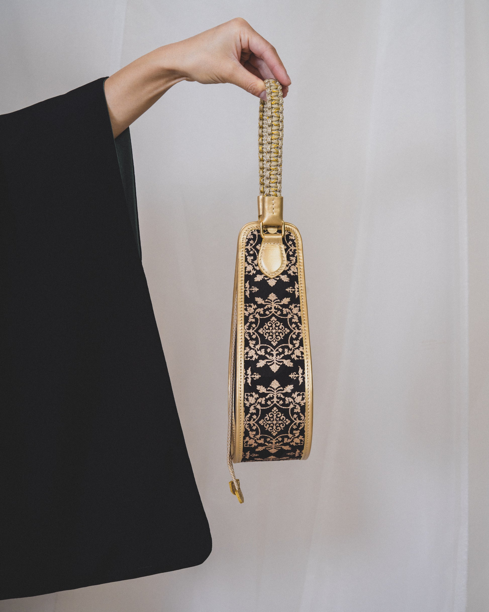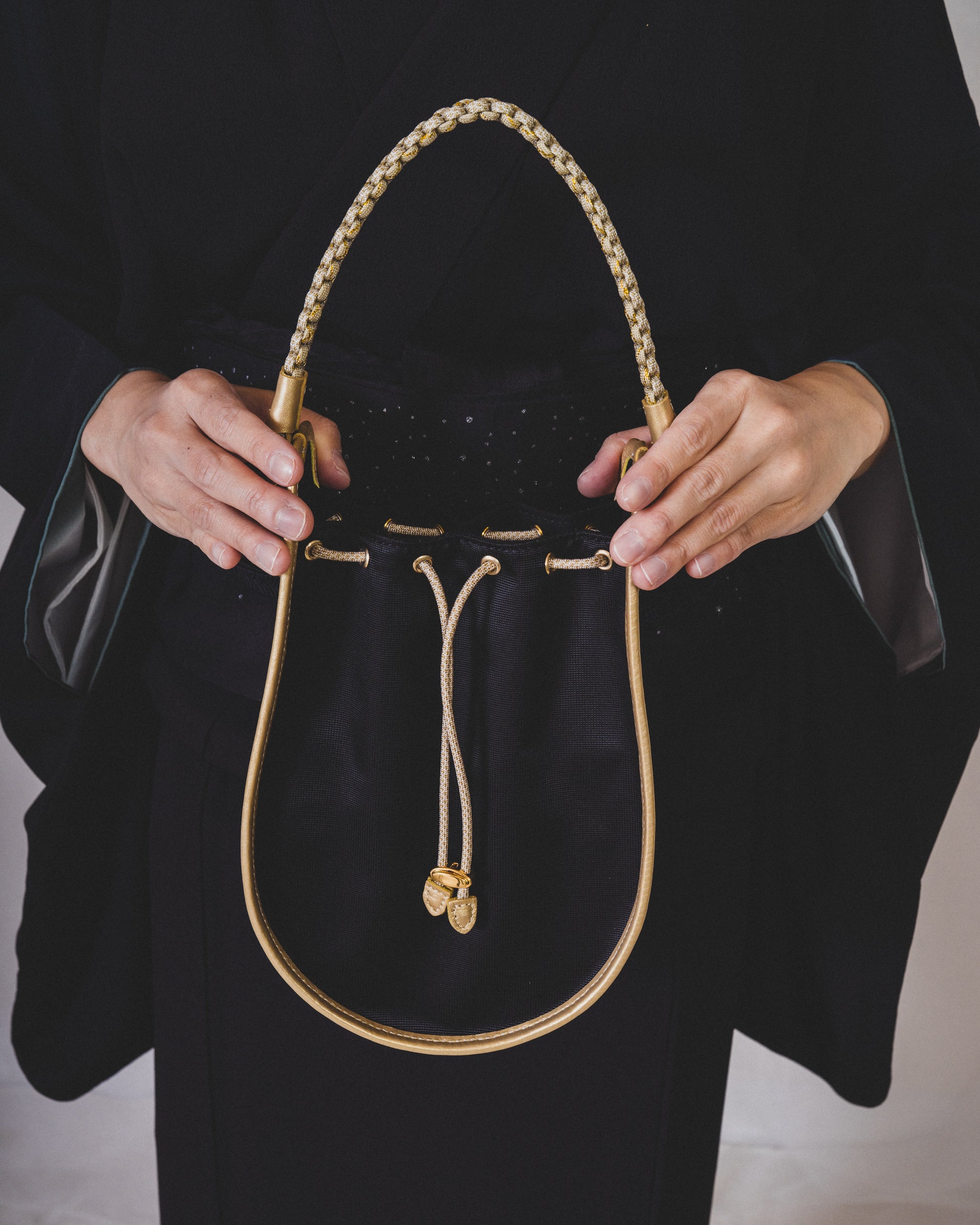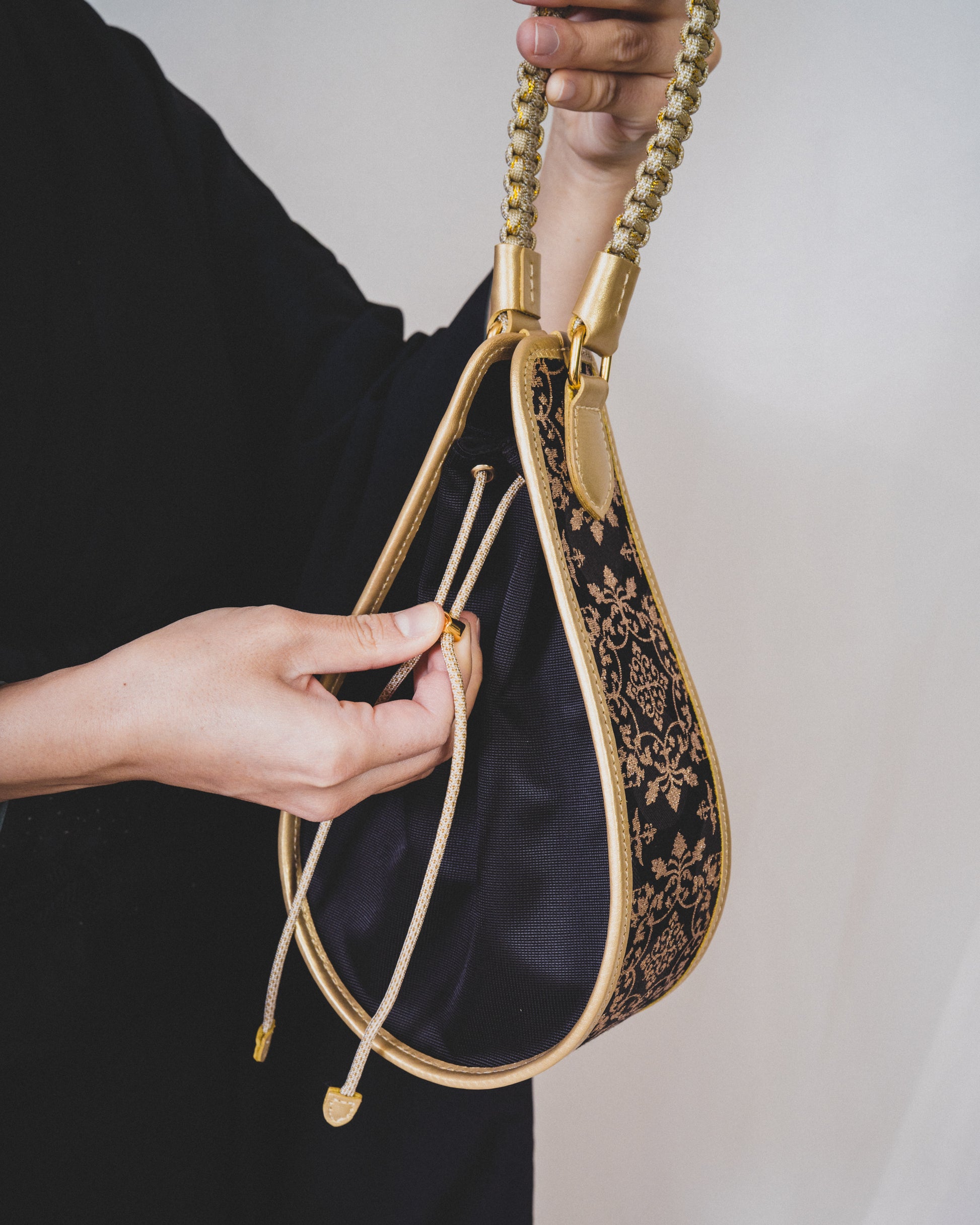 持ち手は職人の手仕事の技術で組んだしっかりしたナイロン組紐です。