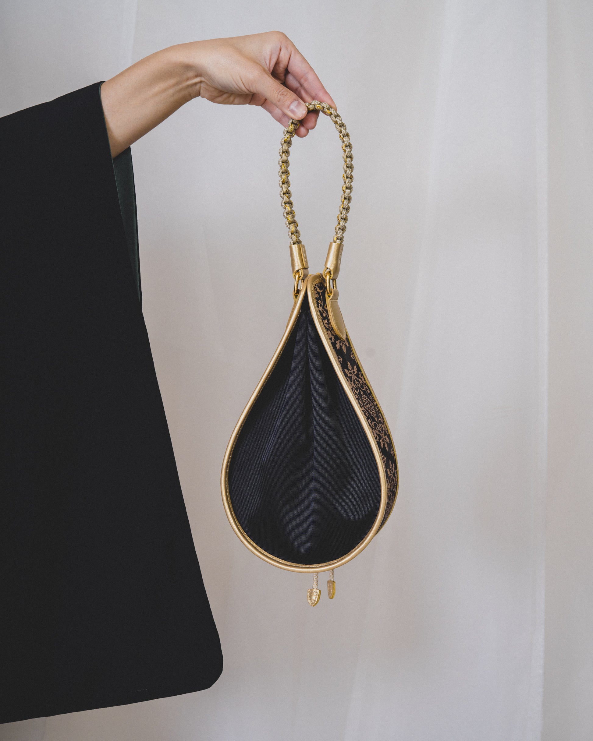 自然の中で現れる水滴や雫に光が当たり、浮かび上がるシルエットをバッグとして製作しました